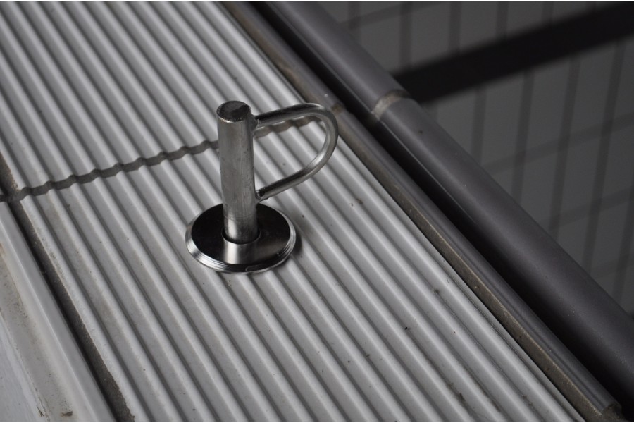 Vízszintes síkra épített, pályaelválasztó kötelek és vízilabda kaputartó kötelek rögzítéséhez